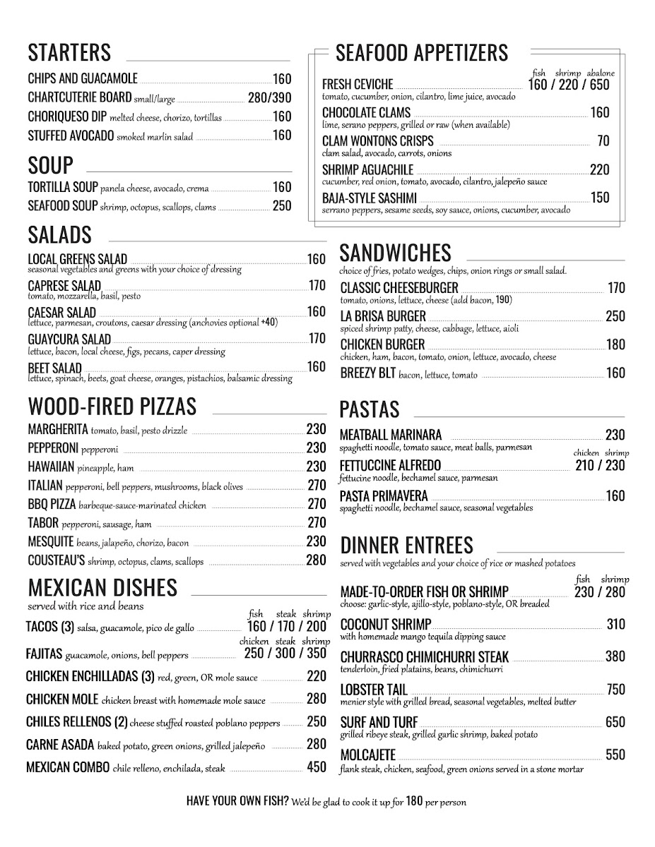 From a reviewer’s perspective, the menu at La Brisa Restaurant + Bar offers a well-rounded selection that caters to a variety of tastes, particularly excelling in fresh seafood and thoughtful vegetarian options. While specific dish names and prices are not prominently highlighted, the emphasis on a seafood-focused menu and a dedicated vegetarian selection suggests a flexible dining experience that can satisfy both traditional and plant-based preferences. The ambiance is further enhanced by features like live music and event hosting, which complement the overall dining experience. Convenient on-site parking adds to its accessibility, making it an easy choice for both locals and visitors. Overall, even without detailed pricing or dish breakdowns, the menu reflects a balanced and inviting approach, positioning the restaurant as a versatile spot for enjoying coastal cuisine in a lively yet relaxed setting.